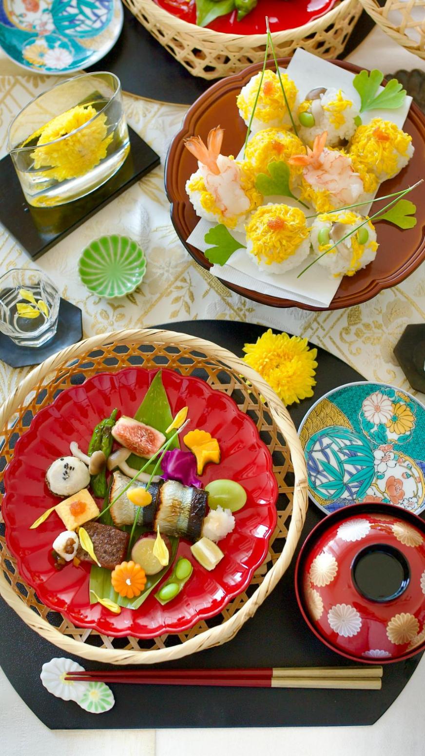 A celebratory plate in the shape of a chrysanthemum, adding a touch of elegance.