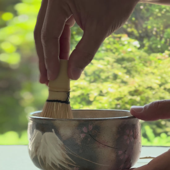 The sides of the bowl are thoughtfully shaped to fit comfortably in the hand, making it very easy to hold. Compared to other matcha bowls, it is also remarkably lightweight — a rare feature in this type of ware, and one of the reasons it's so popular.