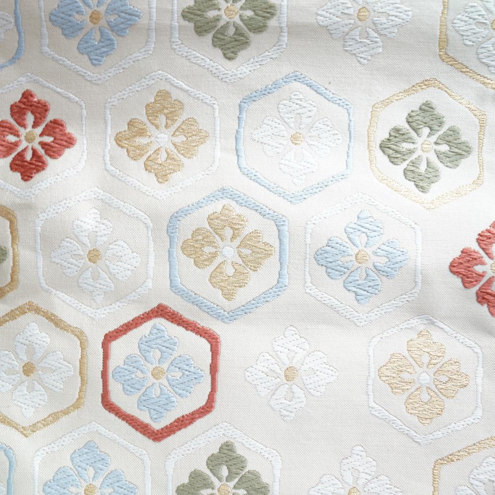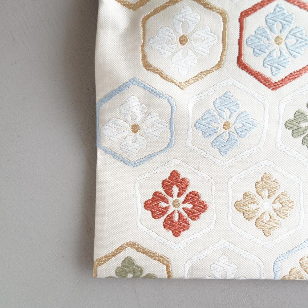 Made in Kyoto from a blend of cotton, silk, and gold-silver threads. The diamond-shaped pattern (hishi) symbolizes fertility and good health, making it a lucky motif.
